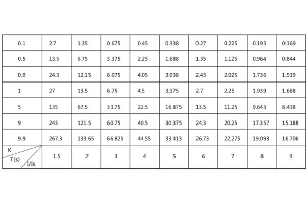 8、典型反時限特性,見下表: