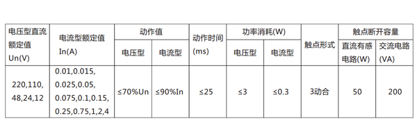 三、DX-11信號繼電器的參數(shù)