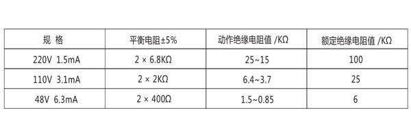 繼電器動作值:當母線任何一側對地絕緣電阻下降到下表規定值時.繼電器應可靠動作。