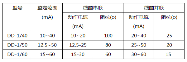 三、DD-1/60接地繼電器的參數