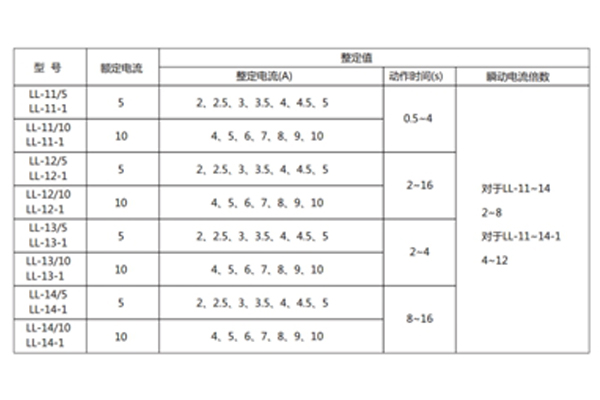 注:特殊規(guī)格LL-10-1(11-1、12-1、13-1、14-1)瞬動電流倍數(shù)4-12,其余參數(shù)與LL-10系列對應;繼電器的電流線圈允許長期通過